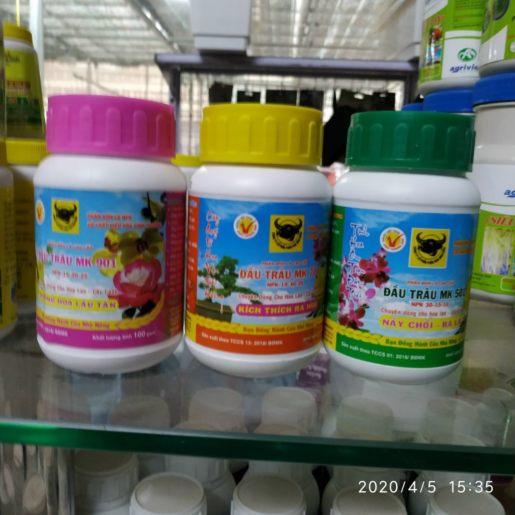 Bộ 3 phân bón Đầu Trâu chuyên dùng cho hoa, cây cảnh: 100g/lọ+MK 501: nảy chồi- ra lá: dùng cho cho cây sau khi đã chơi hoa, giúp cây phát triển chồi lá