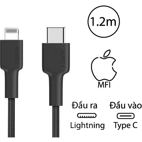 3. Cáp sạc nhanh AUKEY CB-CL1 USB-C ra Lightning MFi PD 27W chiều dài 1.2m