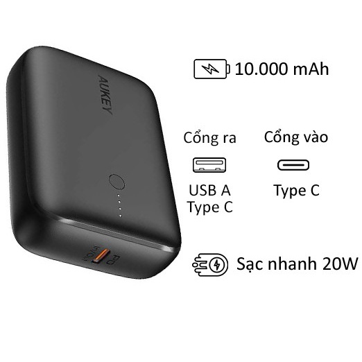 1. Sạc dự phòng Aukey PB-N83S dung lượng 10.000mAh sạc PD 20W, Sạc nhanh Q.C 3.0