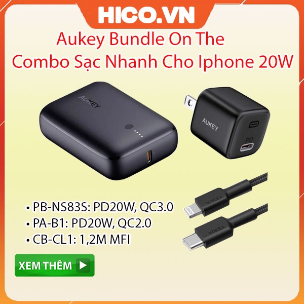 Điện Thoại & Phụ Kiện > Phụ kiện > Sạc dự phòng & Pin > Sạc dự phòng || Combo 3 Sản Phẩm Trọn Bộ Sạc Nhanh iPhone 12 Series, iPhone 13 Series AUKEY TK-2 On The Go Bundle - Hàng Chính HãngCòn hàng