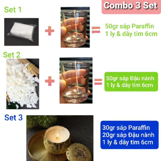 Combo 3 Set tiết kiệm tự tay làm 3 Ly nến sáp Paraffin Malaysia & nến thơm sáp Đậu nành tự nhiên-9293store-9293kitdecor