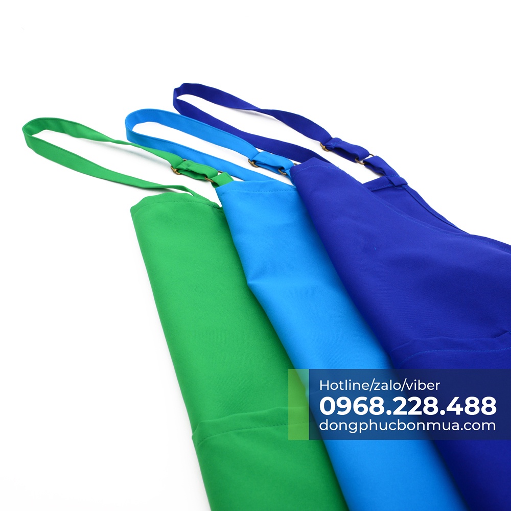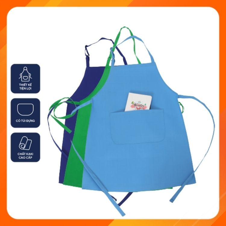 Giới thiệu Combo 3 tạp dề trơn chất kaki thoáng mát, chống nóng - Màu xanh lá cây, xanh da trời, xanh dương - Lên form cực đẹp