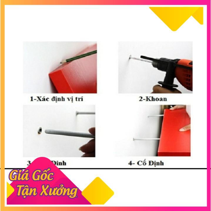 +Bước 1: ướm kệ lên vị trí muốn lắp đặt --> đánh dấu vị trí 2 lỗ khoan
