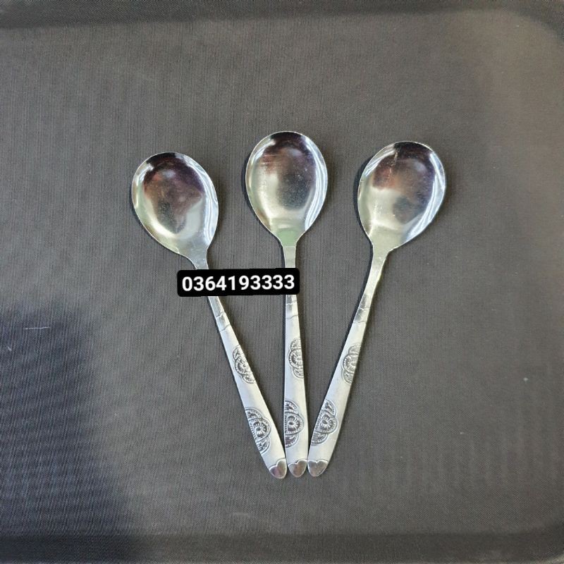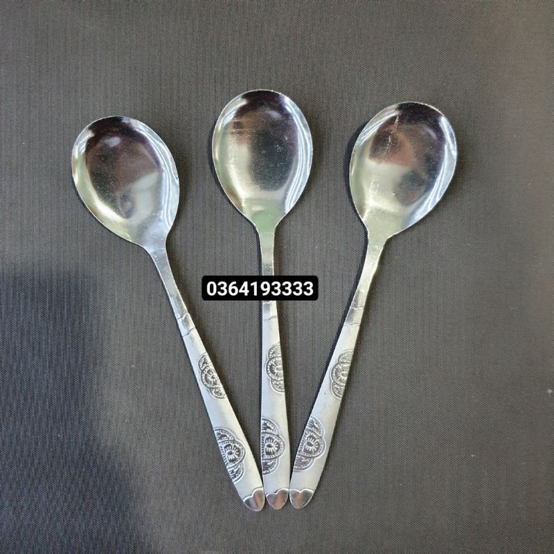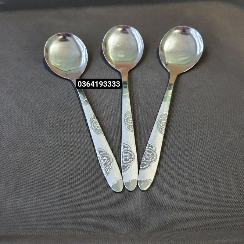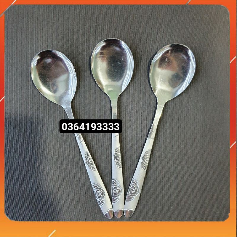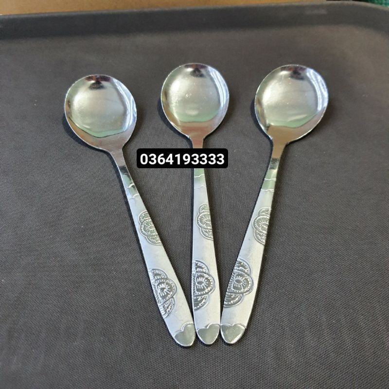 Combo 3 thìa inox tròn cán hoa ăn cháo, súp, cơm