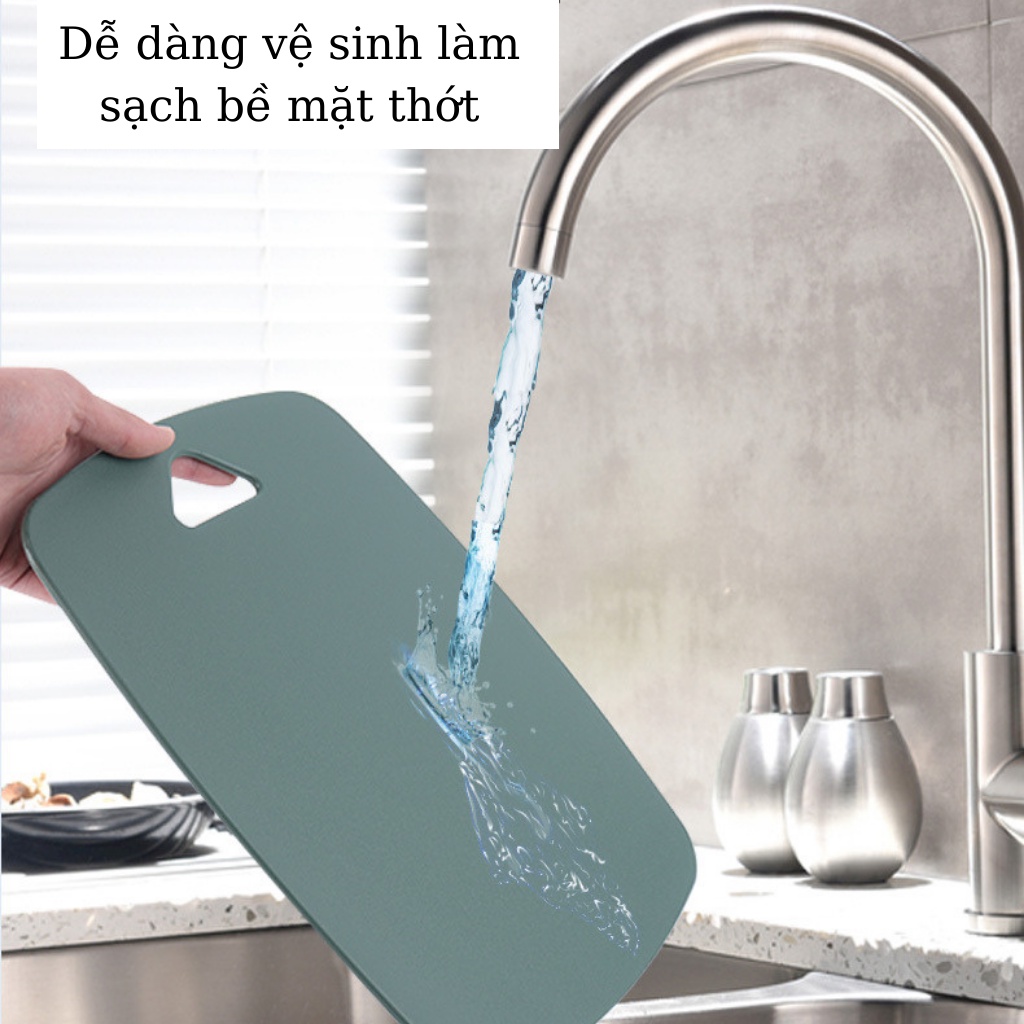 👉Chị em trước giờ dùng thớt nhựa là hay sợ dễ vỡ, nứt, dùng vài bữa là chi chít vết cắt bề mặt, nhưng riêng bộ này thì hoàn toàn khắc phục được hết nhược điểm đó lun . Bề mặt chống trơn trượt, chống xước, kháng khuẩn, có thể treo tiện lắm
