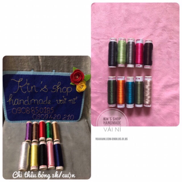 Combo chỉ thêu bóng dùng thêu tay hoặc thêu máy, thêu mắt mũi miệng DOLL, sản phẩm thêu hoa lá cành