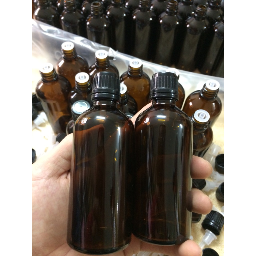 Đặc biệt được nhiều khách hàng ưa chuộng;Chai tinh dầu nâu nắp đen 100ml phù hợp cho tất cả các chủng loại tinh dầu, nước hoa, mẫu thử.