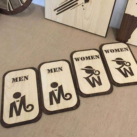 Bộ 2 bảng toilet Men /Women thiết kế và cắt laser với độ sắc nét cao, làm từ gỗ veneer 2 lớp với 2 màu vân gỗ tương phản tạo điểm nổi bật cho sản phẩm.- Bảng gắn tường bằng keo 2 mặt silicone (siêu dính)