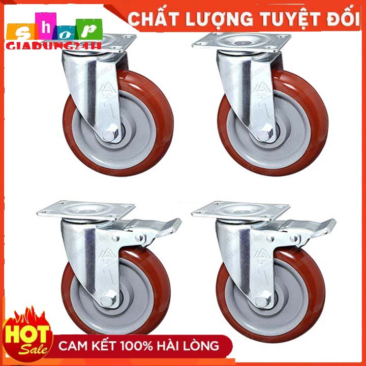 Nhà cửa & Đời sống > Dụng cụ & Thiết bị tiện ích > Xe đẩy || Combo 4 bánh xe đẩy hàng chịu lực cao D 10cm - 2 bánh xoay và 2 bánh xoay có khóa - Màu đỏ mận-Giadung24hCòn hàng