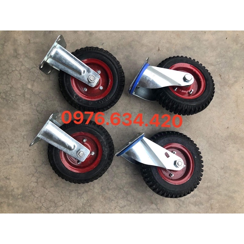 Combo 4 bánh xe đẩy hàng gồm 2 bánh xoay 2 bánh cố định loại 20cm