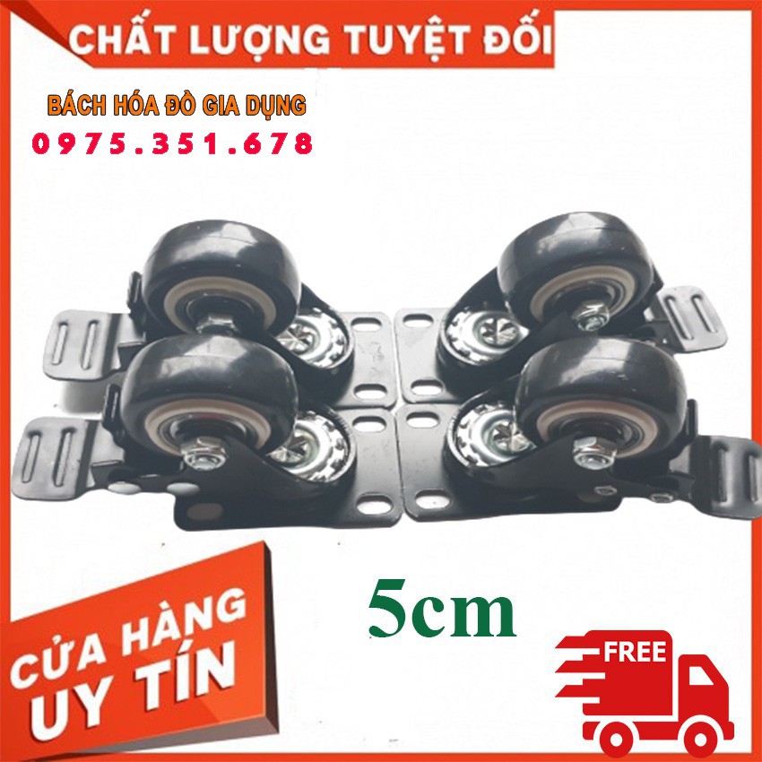 Nhà cửa & Đời sống > Dụng cụ & Thiết bị tiện ích > Xe đẩy || Combo 4 bánh xe đẩy hàng xoay 360 độ, có khóa chống xoay chống trượt loại 5cm nhóm màu viền đenCòn hàng