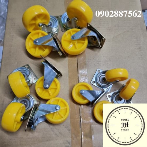 combo 4 bánh xe đẩy nhựa vàng đủ size hàng việt nam