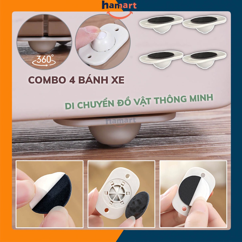 COMBO 4 Bánh Xe Nhựa Hamart Bánh Xe Di Chuyển Đồ Vật DÁN 3M XOAY 360° CHỊU TẢI LỚN TIỆN LỢI