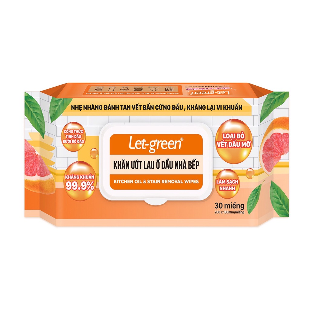 Khăn Ướt Lau Ố Dầu Nhà Bếp Let-Green 30 Tờ/Bao