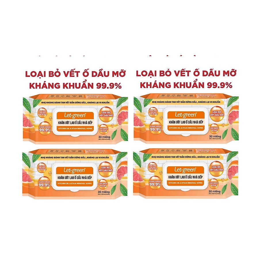 Combo 4 Bao Khăn Ướt Lau Ố Dầu Nhà Bếp Let-Green 30 Tờ/Bao