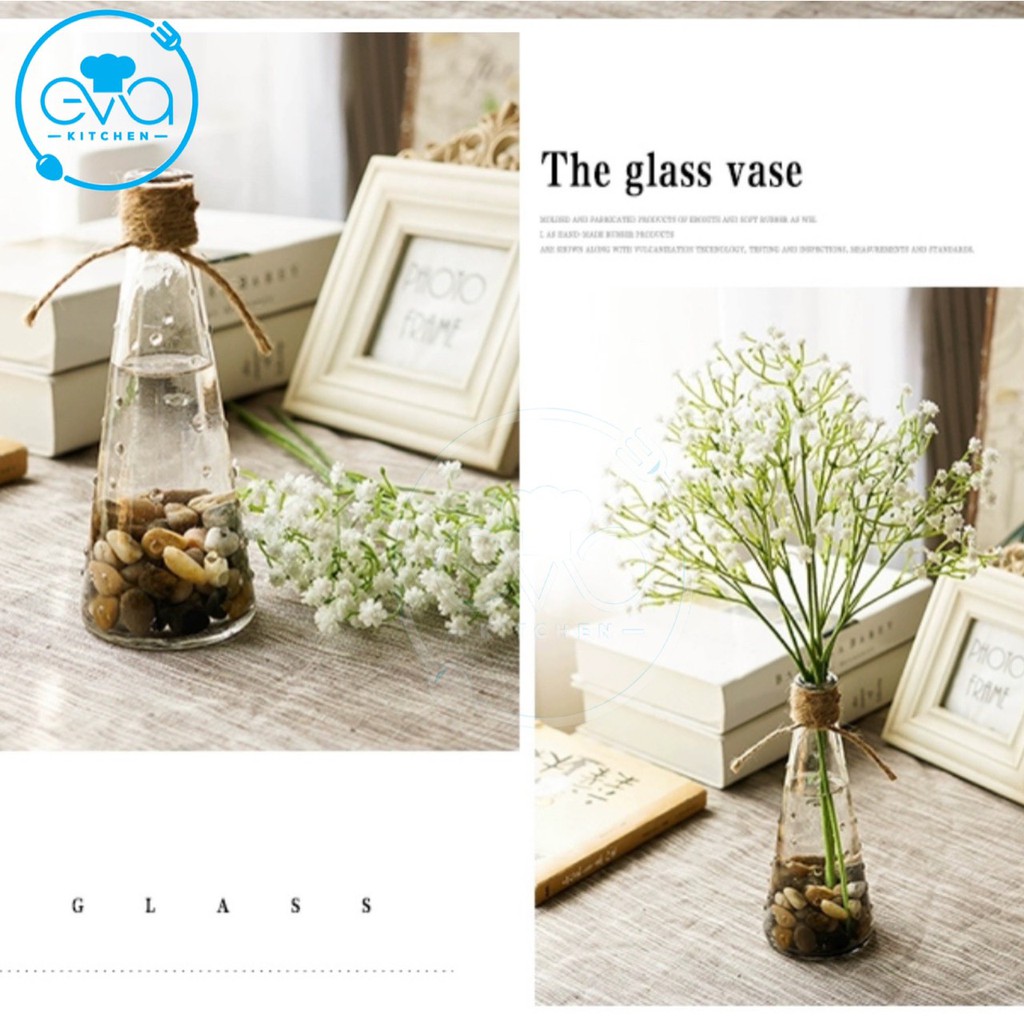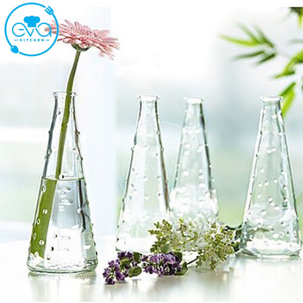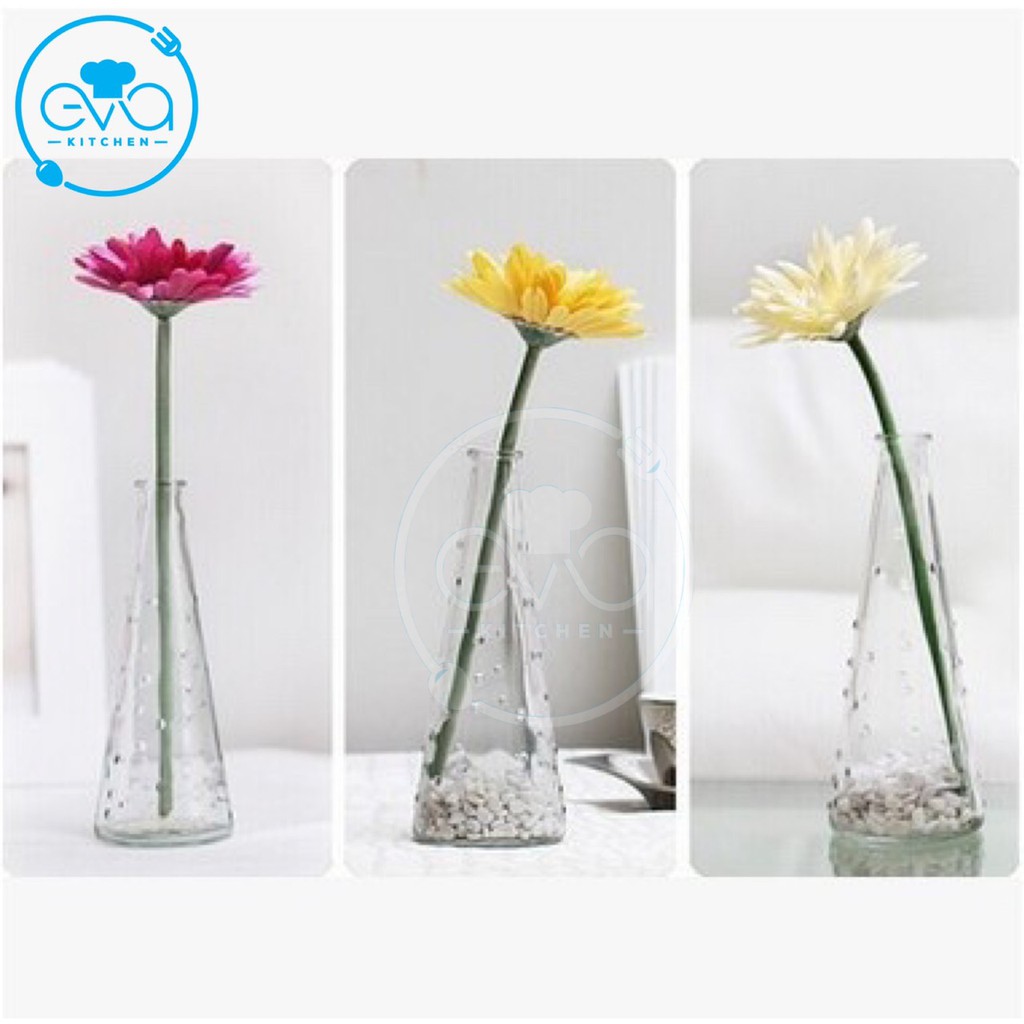 Combo 4 Bình Bông Lọ Hoa Thủy Tinh Tam Giác Chấm Bi Nổi 1 Cành Tặng Kèm Dây Bố Trang Trí