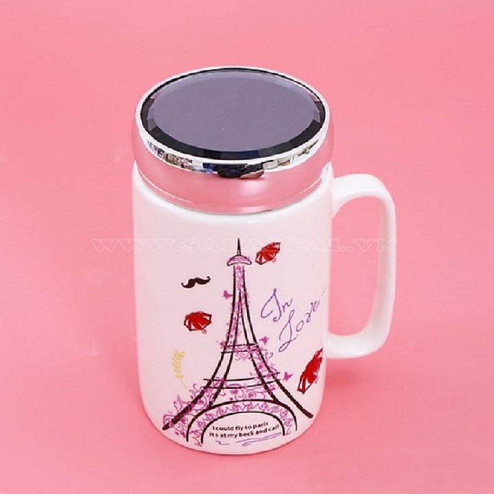 - Chất liệu: cốc bằng sứ, nắp inox (nắp có thể soi gương).