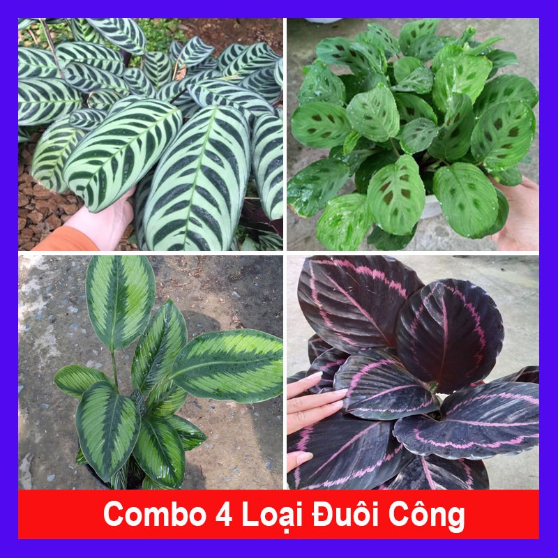 Combo 4 cây đuôi công ( cây đuôi công sọc + cây đuôi công đốm + đuôi công xanh trắng + cây đuôi công tím ) tặng phân bón