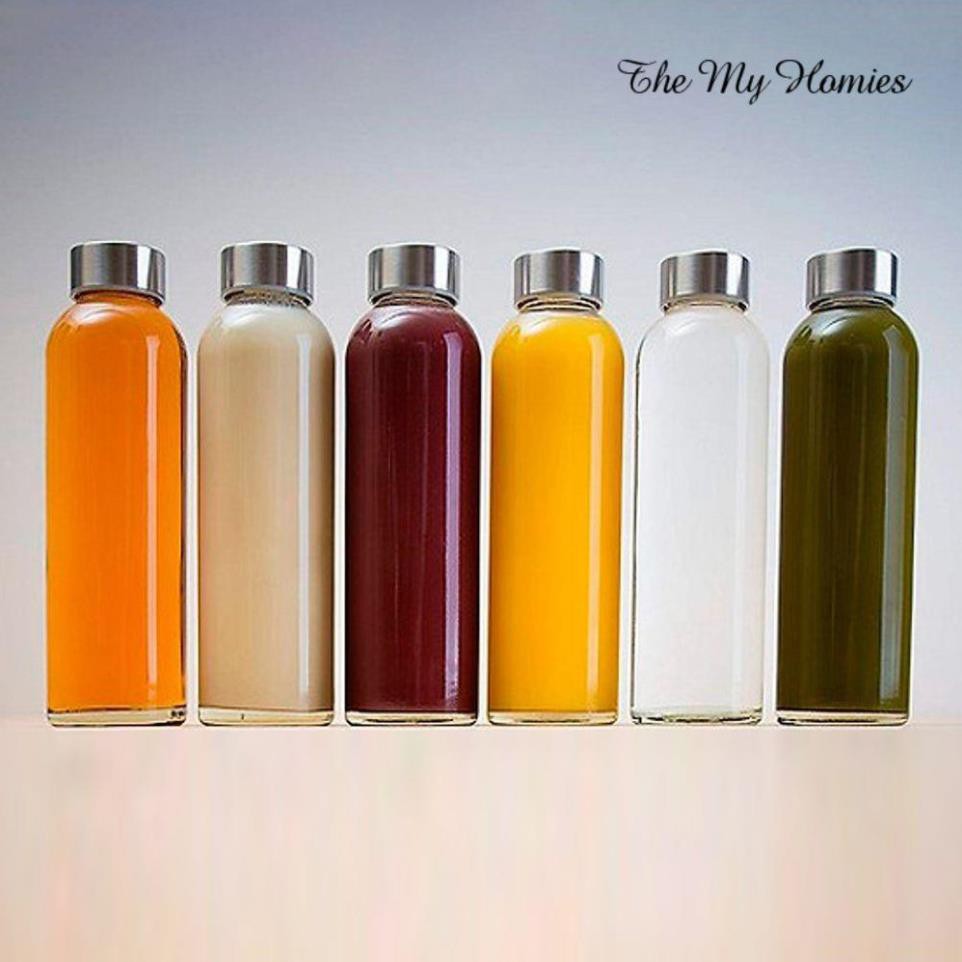 [COMBO 4 Chai] Bình thủy tinh trong suốt 500ML quay nhiều màu