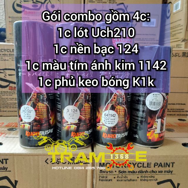 [ COMBO 4 CHAI ] SƠN XỊT SAMURAI MÀU TÍM ÁNH KIM, TÍM KHÓI METAN UCH210 - 124 - 1142 - K1K