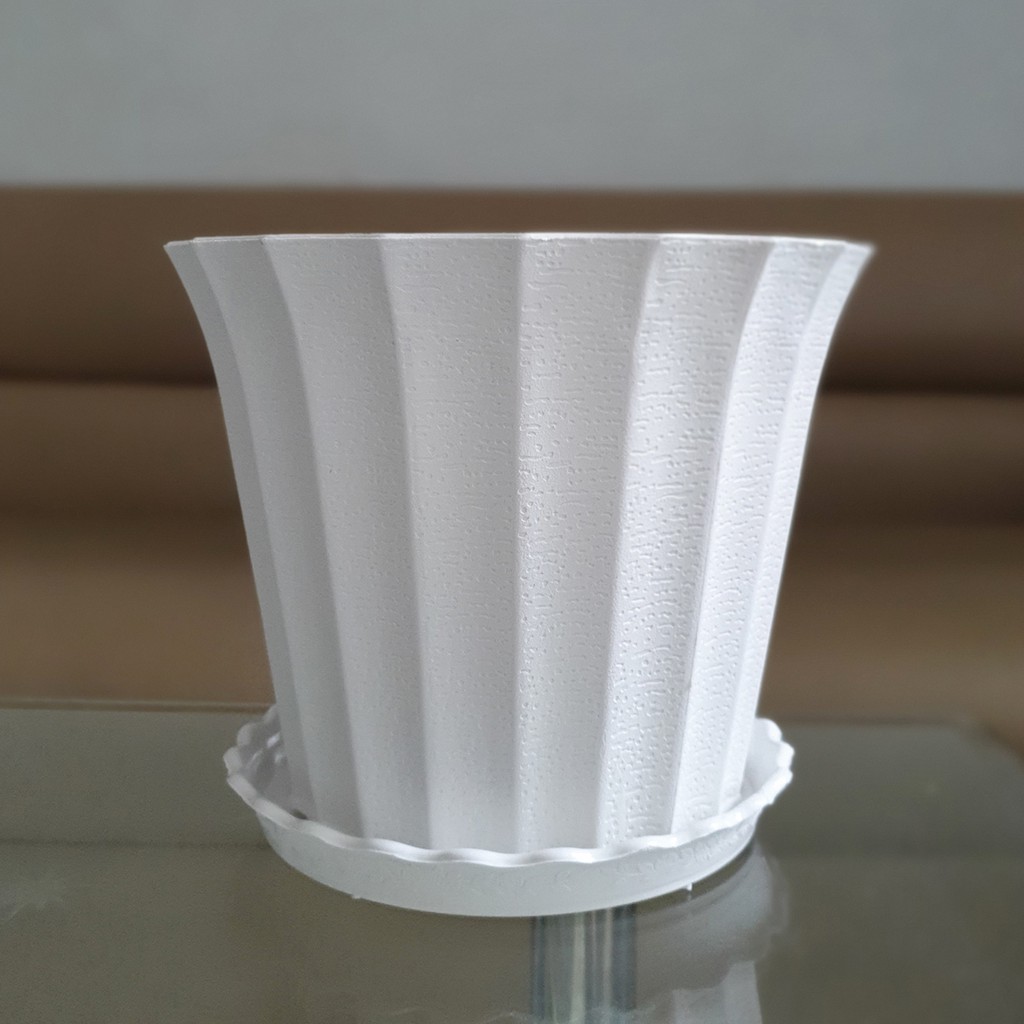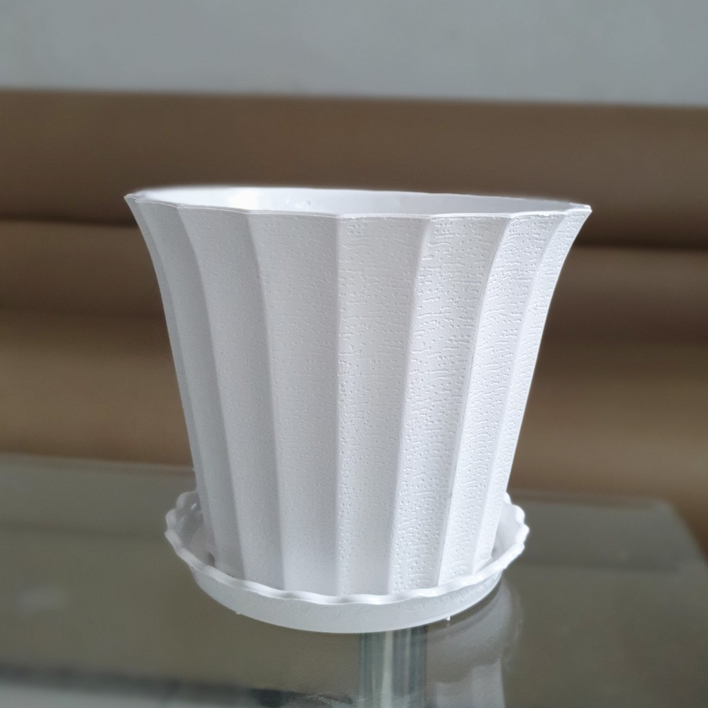 Combo 4 chậu trồng hoa khía nhựa trắng 22cm kèm 4 đĩa lót chậu