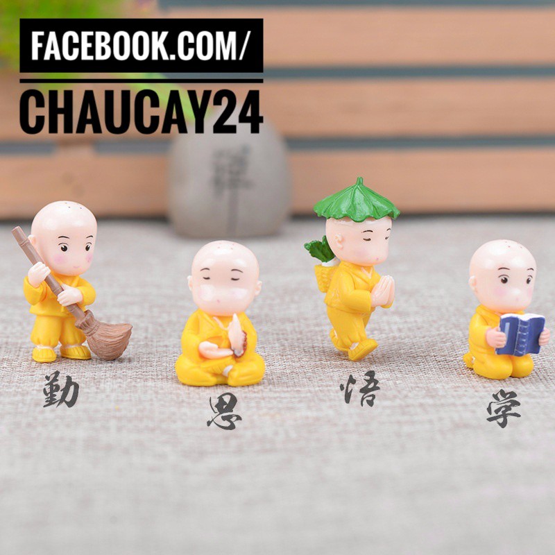 COMBO 4 Chú Tiểu Áo Vàng - Tiểu Cảnh Trang Trí Terrarium, Sen Đá, Xương Rồng, cây bonsai