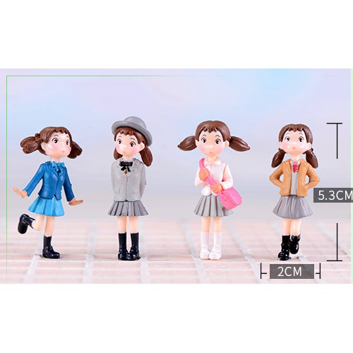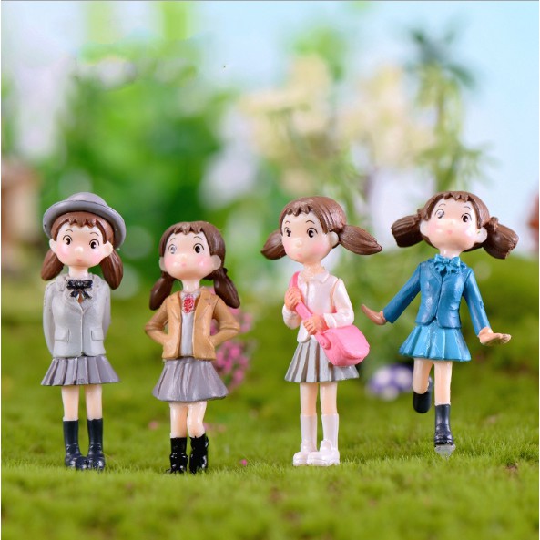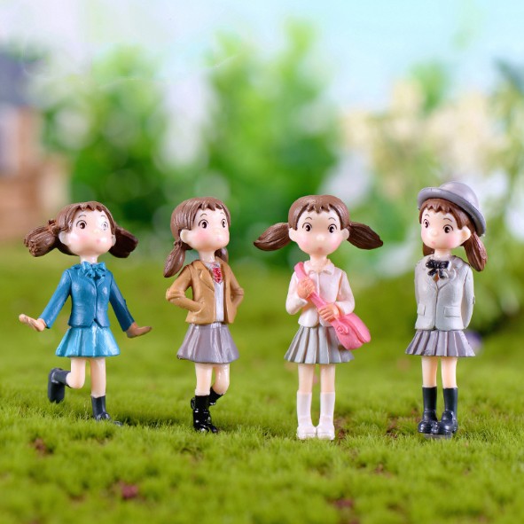 Combo gồm 04 mô hình Tiểu Mai mặc quần áo mùa thu chuyên dùng trang trí tiểu cảnh, bonsai ....Chất liệu vinyl cứng cáp, màu sắc tươi tắn, đường nét sắc sảo.