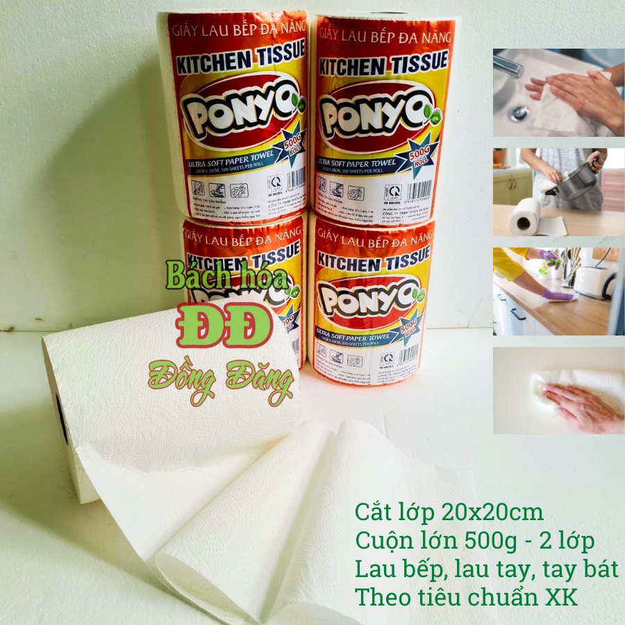 Nhà cửa & Đời sống > Dụng cụ chăm sóc nhà cửa > Khăn vệ sinh || COMBO (4 CUỘN) GIẤY LAU BẾP ĐA NĂNG TRỤ ĐỨNG 500G PONYO - LAU TAY, CHÉN DĨA, THẤM DẦUCòn hàng