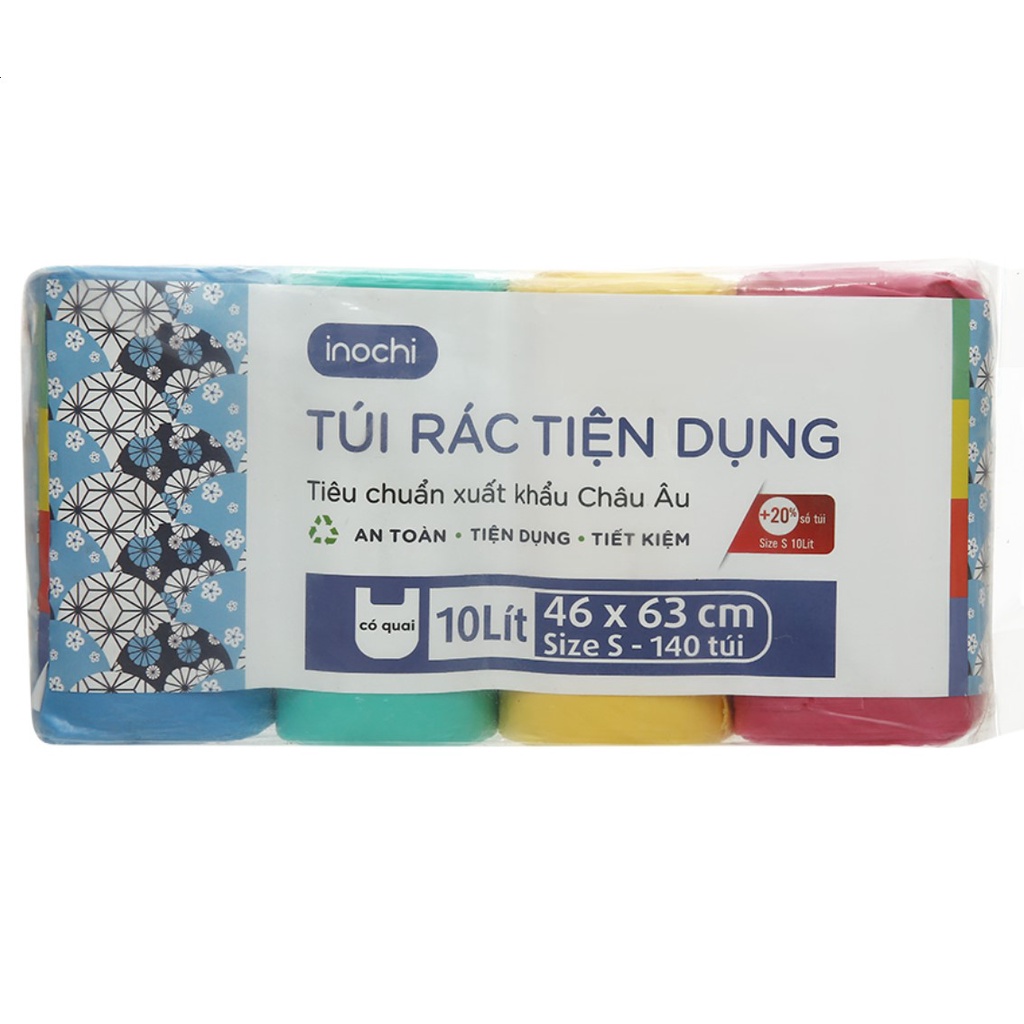 - Tên sản phẩm: Combo 4 cuộn túi rác màu có quai xách tiện dụng INOCHI SOJI size 10,25,50 lít lên đến 35 túi/cuộn (nhiều tùy chọn)