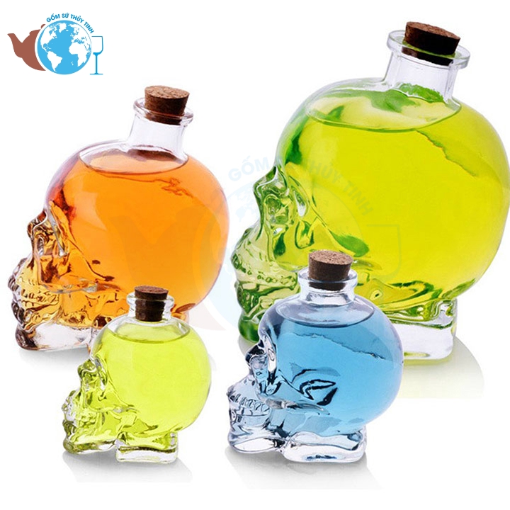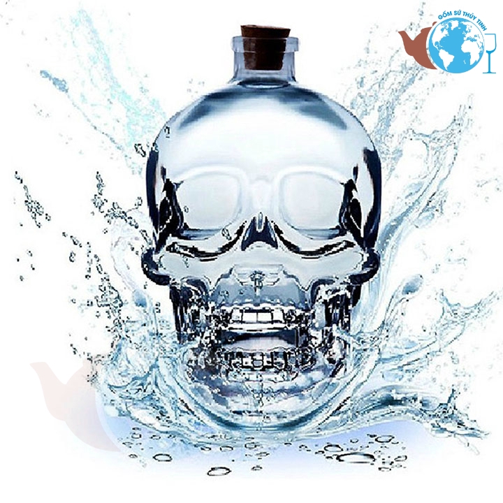 Bình thủy tinh đầu lâu sử dụng chất liệu thủy tinh cao cấp, trong suốt. Rất dễ vệ sinh, chùi rửa.