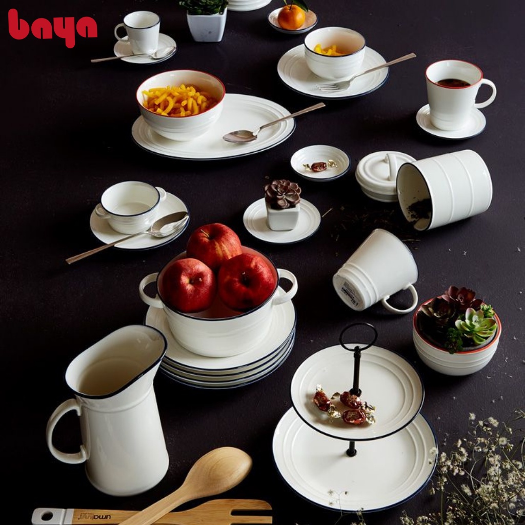 Nhà cửa & Đời sống > Bộ đồ bàn ăn > Dĩa || Combo 4 Đĩa Tráng Men BAYA REGATTA Gồm 2 Cỡ Lớn Và 2 Cỡ Sâu Lòng Chất Liệu Sứ Trắng 6000252Còn hàng