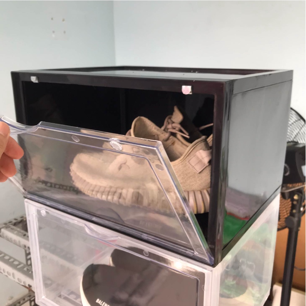 1. Hộp đựng giày bằng nhựa cao cấp, dày và cứng cáp, đảm bảo tốt nhất thị trường hiện tại.