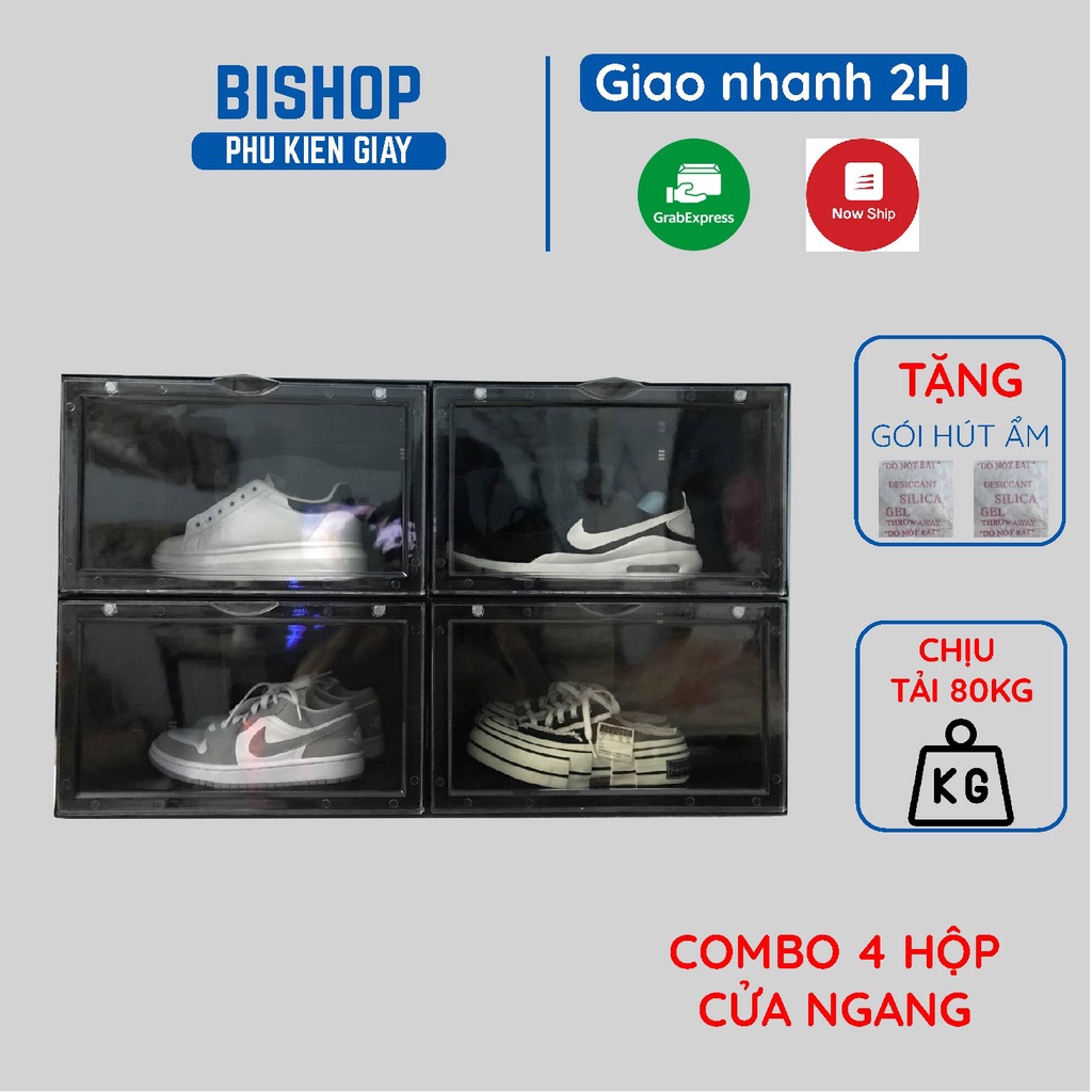 Combo 4 Hộp Nhựa Đựng Giày Nắp Ngang Hộp Giày Nhựa Cứng Cao Cấp BISHOP