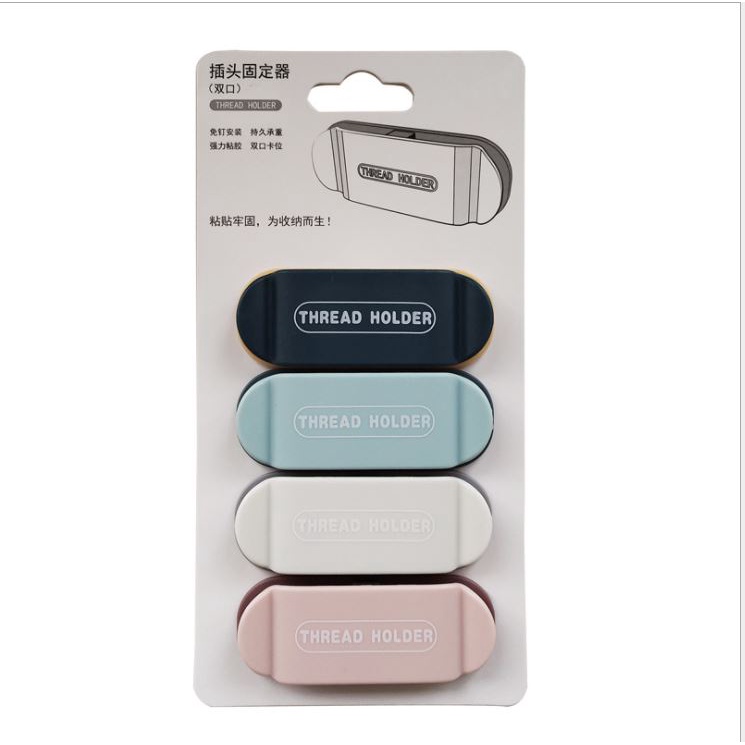 Nhà cửa & Đời sống > Sắp xếp nhà cửa > Móc treo || [Combo 4 kẹp - 4 màu] Kẹp dán tường giữ dây điện ổ cắm gọn gàng, không rối mắtCòn hàng