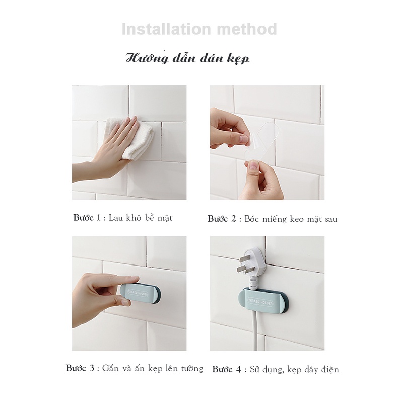 Giới thiệu [Combo 4 kẹp - 4 màu] Kẹp dán tường giữ dây điện ổ cắm gọn gàng, không rối mắt