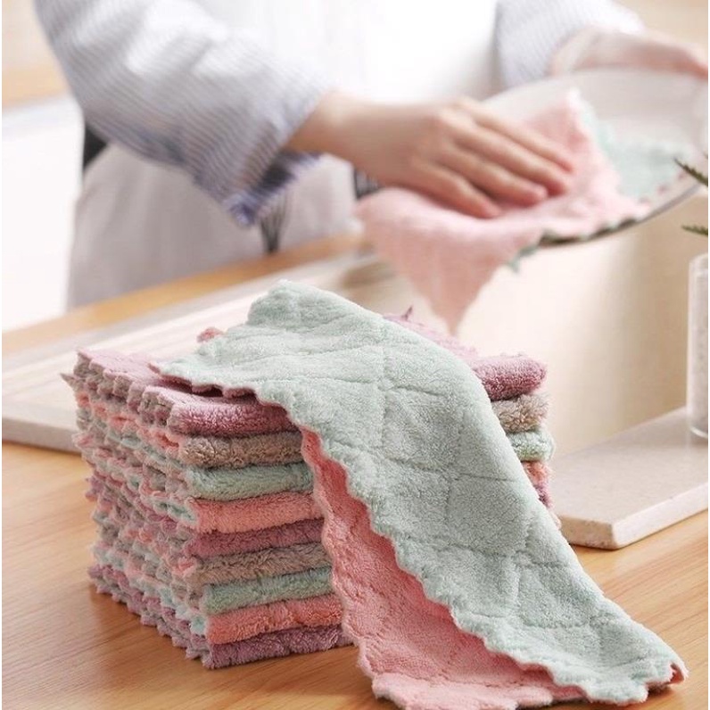 Nhà cửa & Đời sống > Đồ dùng phòng tắm > Khăn mặt, khăn tắm, áo choàng tắm > Khăn mặt || [COMBO 4 KHĂN] Khăn Bông Lau Bếp, Lau Chén Bát - Khăn Vệ Sinh Đa Năng 2 Mặt Siêu Thấm Hút (16x28cm)Còn hàng