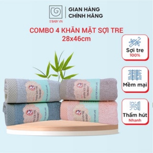 Combo 4 Khăn Mặt Sợi Tre Cao Cấp S'BABY 28x46cm Theo Tiêu Chuẩn Xuất Nhật, An Toàn Cho Da - CB000016🌸 THÔNG TIN SẢN PHẨM