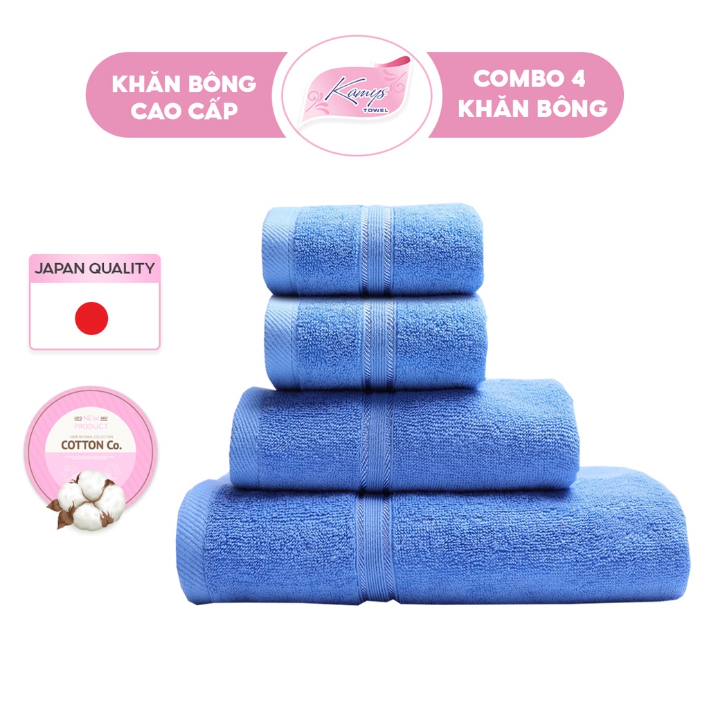 Giới thiệu Combo 4 Khăn Tắm Gội Mặt Cao Cấp Kamys Towel 100% Cotton Siêu Thấm Hút, Không Sổ Lông, Không Phai Màu
