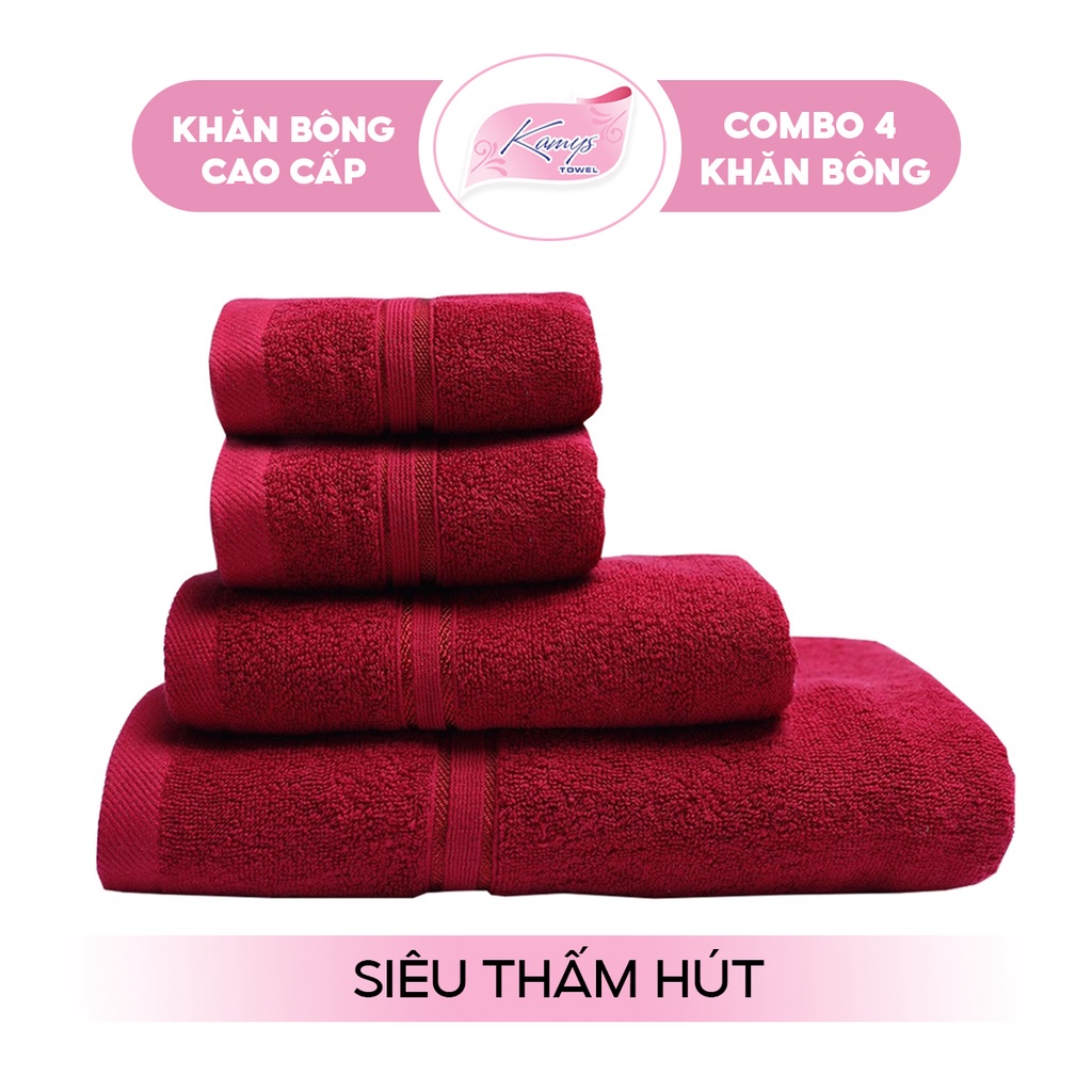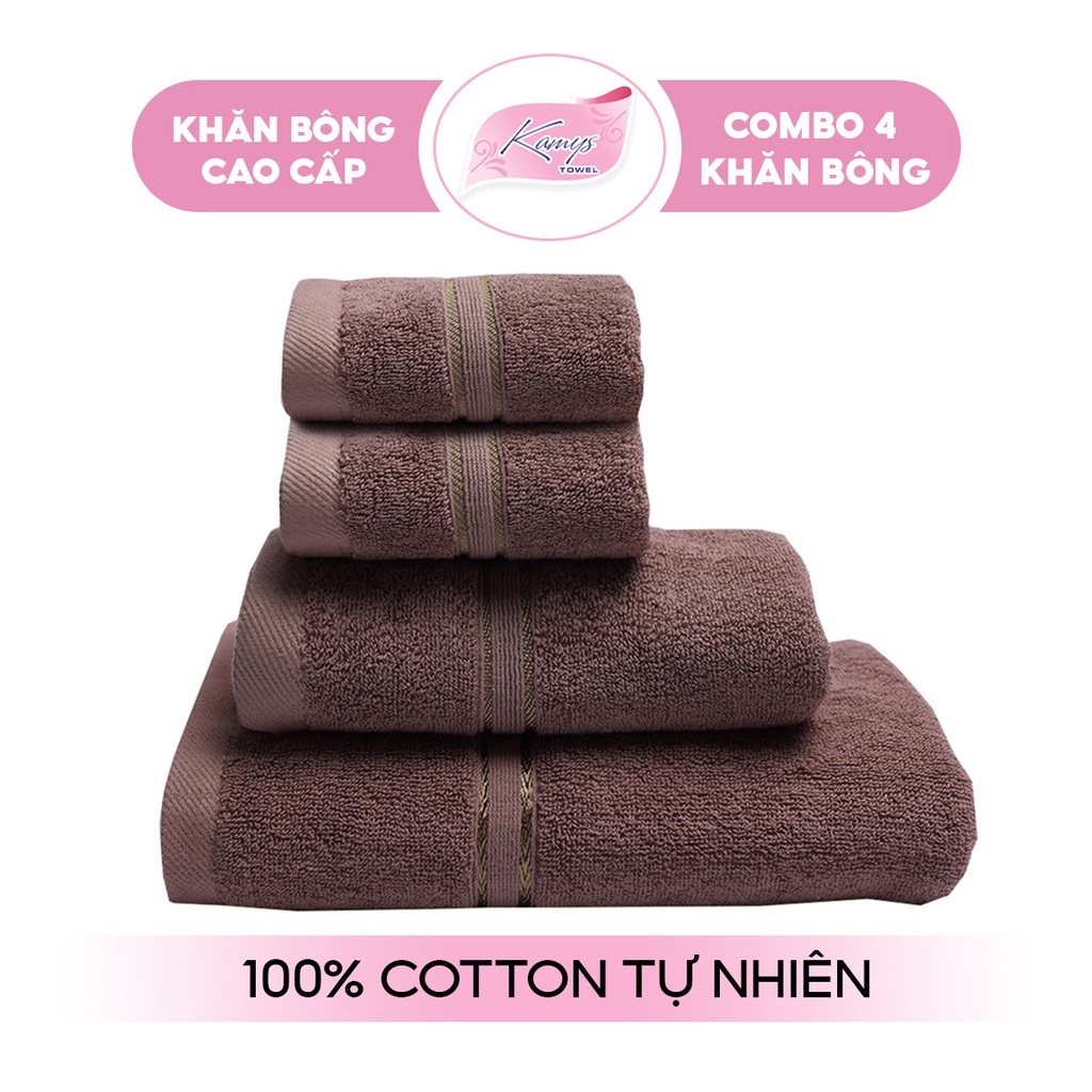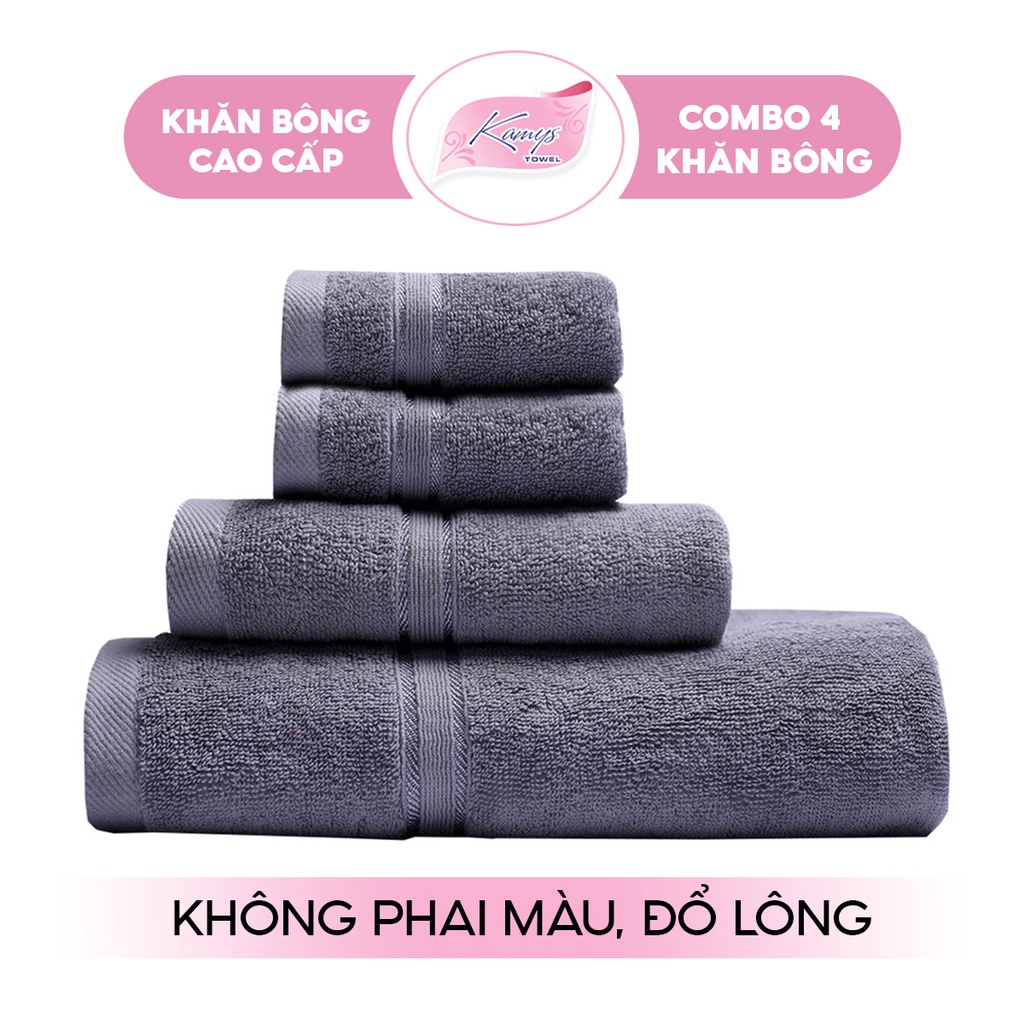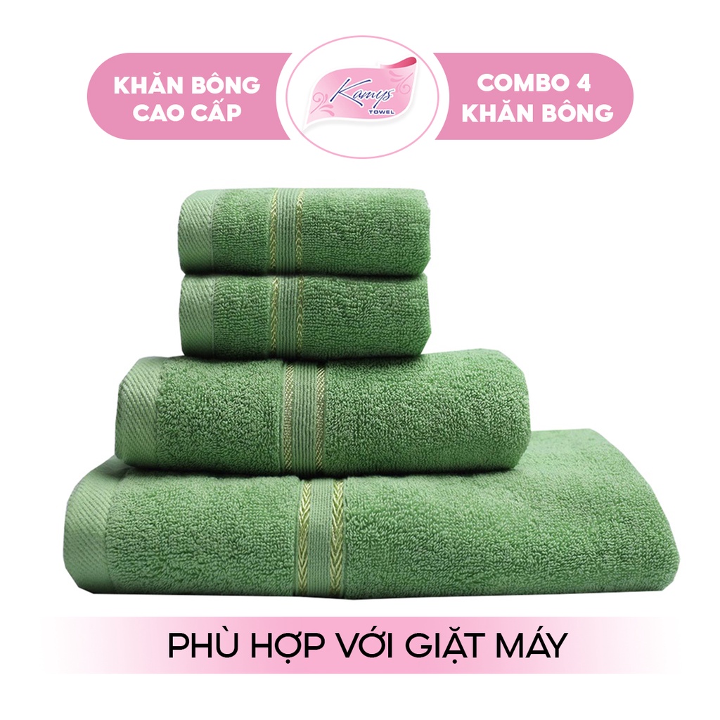 Combo 4 Khăn Tắm Gội Mặt Cao Cấp Kamys Towel 100% Cotton Siêu Thấm Hút, Không Sổ Lông, Không Phai Màu