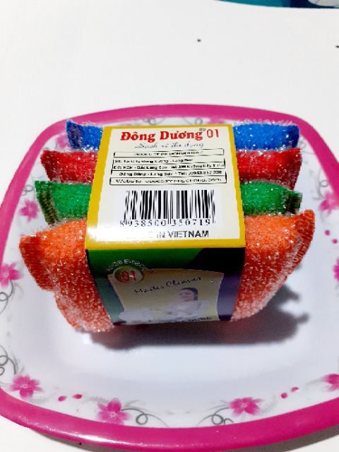 Combo 4 miếng rửa chén Đông DươngThành phần: sợi nilon,sợi dún, mút xốp
