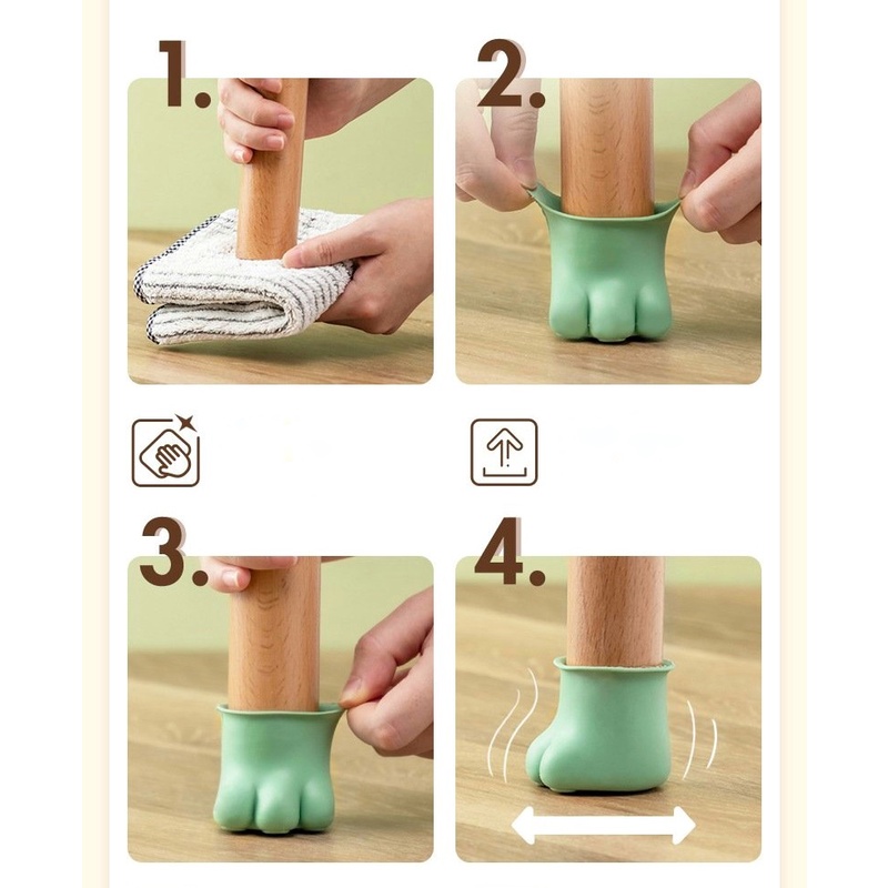 Nhà cửa & Đời sống > Nội thất > Khác || Combo 4 miếng bịt và kê chân bàn, ghế hình chân mèo dễ thương bằng silicon chống trượt chống trầy nền nhàCòn hàng