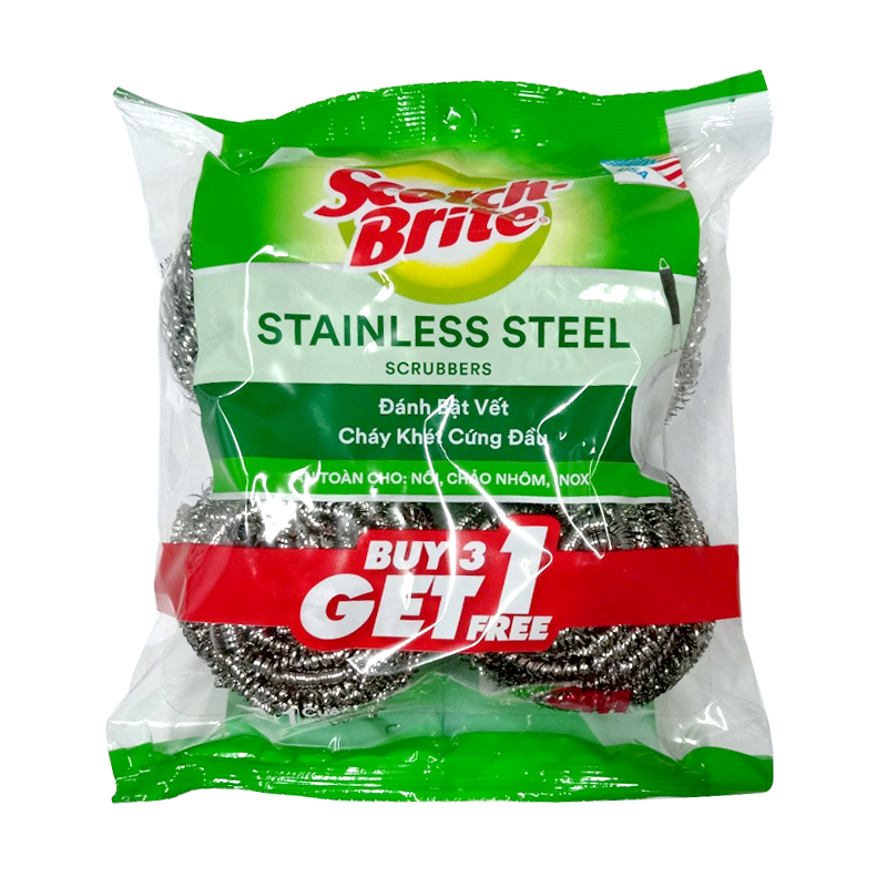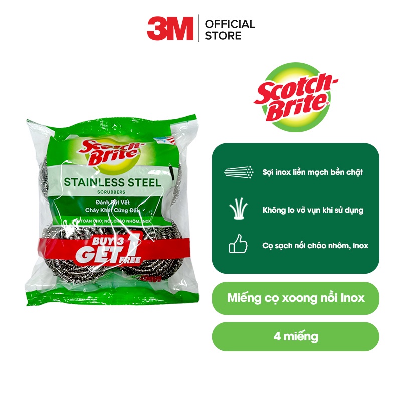 Nhà cửa & Đời sống > Dụng cụ chăm sóc nhà cửa > Miếng bọt biển, miếng chà vệ sinh || Combo 4 Miếng cọ rửa xoong nồi Inox Scotch Brite 3M bền chắc, không gãy vụn, độ bền cao, tiết kiệm chi phíCòn hàng