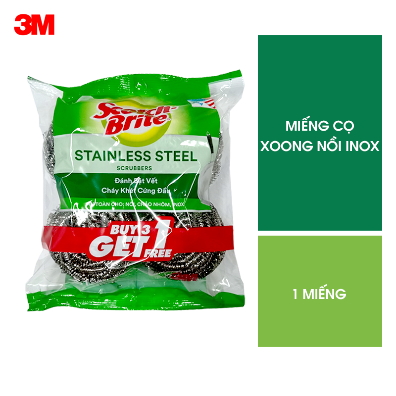 Giới thiệu Combo 4 Miếng cọ rửa xoong nồi Inox Scotch Brite 3M bền chắc, không gãy vụn, độ bền cao, tiết kiệm chi phí