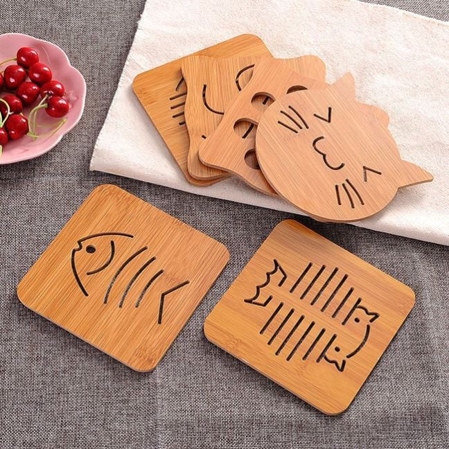Nhà cửa & Đời sống > Bộ đồ bàn ăn > Khay, tấm lót bàn ăn || Combo 4 Miếng LÓT GỖ kê đồ đa năng, cách nhiệt nhiều hoa văn (15x15cm)Còn hàng