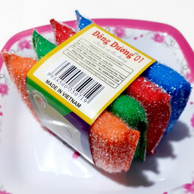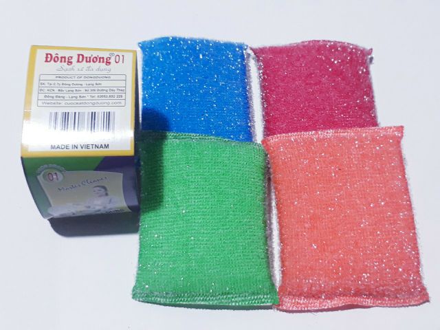 Combo 4 miếng rửa chén Đông DươngThành phần: sợi nilon,sợi dún, mút xốp