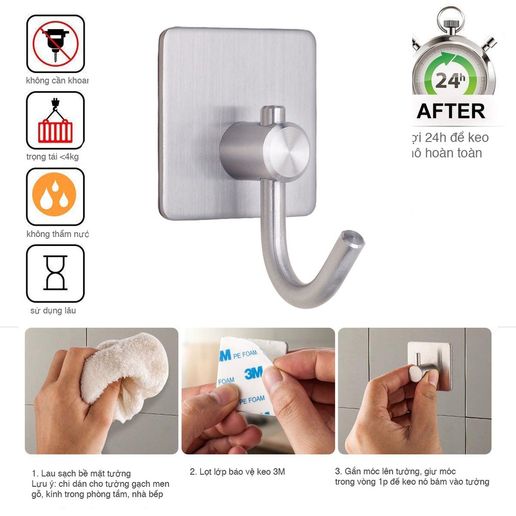 Kiện hàng gồm 4 móc Inox 304 Dán Tường version 2√ Chất liệu Inox SUS304 không rỉ sét