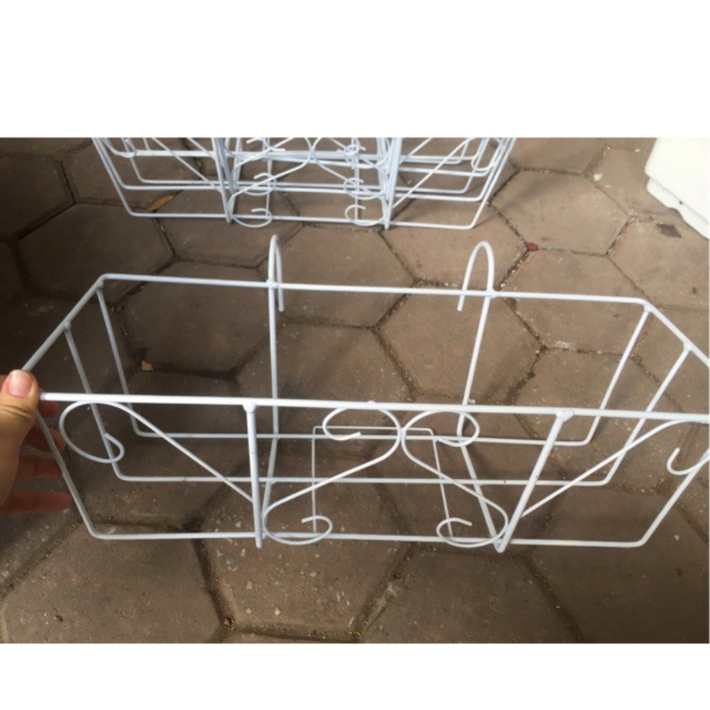 Combo 4 món chậu và giá treo 48x20x16 chậu trồng cây hoa, giá sắt treo ban công