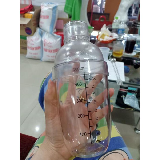 1 bình Shaker in đậm 530ml nhựa trong, có vạch chia in đậm bên trong