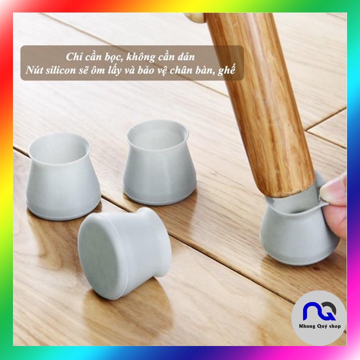 Combo 4 nút silicon tròn bọc bảo vệ chân bàn ghế, chống trầy xước nền nhà, giảm tiếng ồn hiệu quả