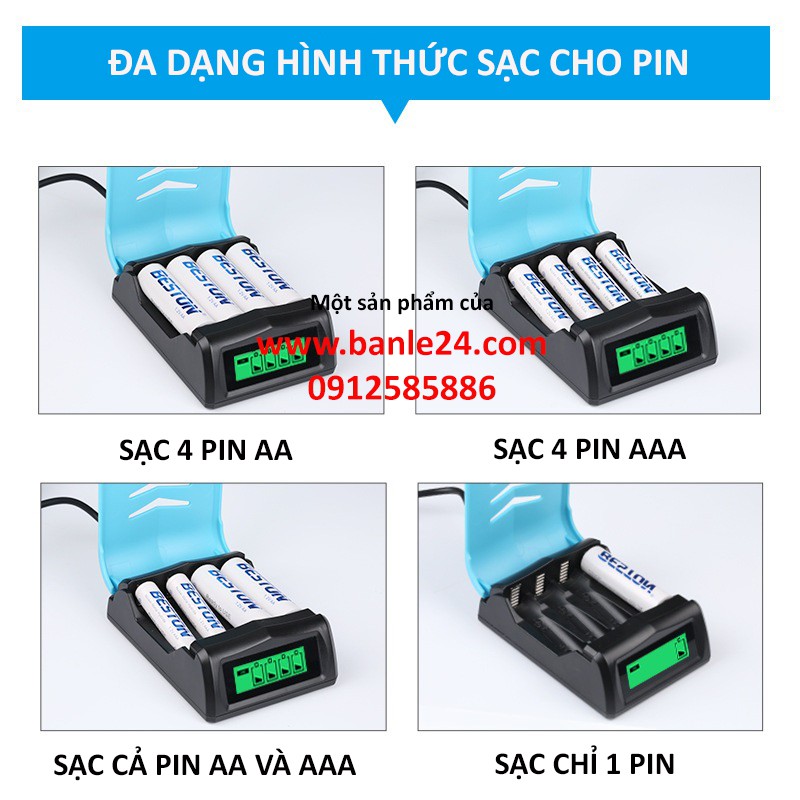 1. Sản phẩm: Combo 4 pin AA/AAA kèm sạc nhanh màn LCD hãng BESTON2. Giới thiệu: